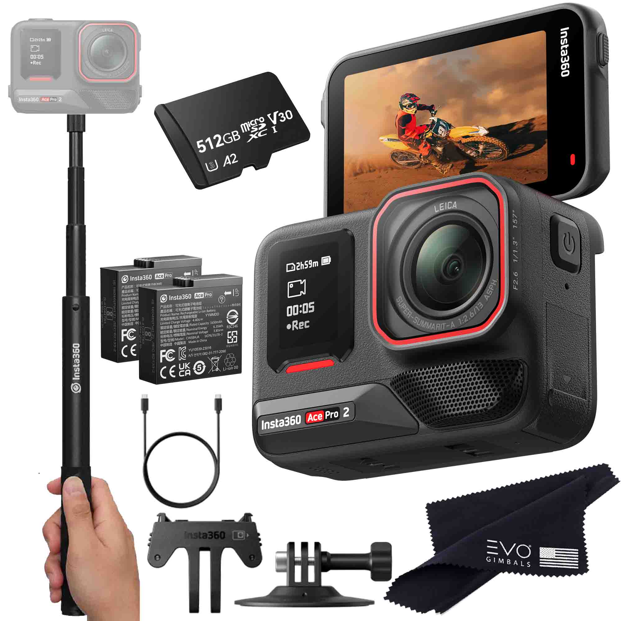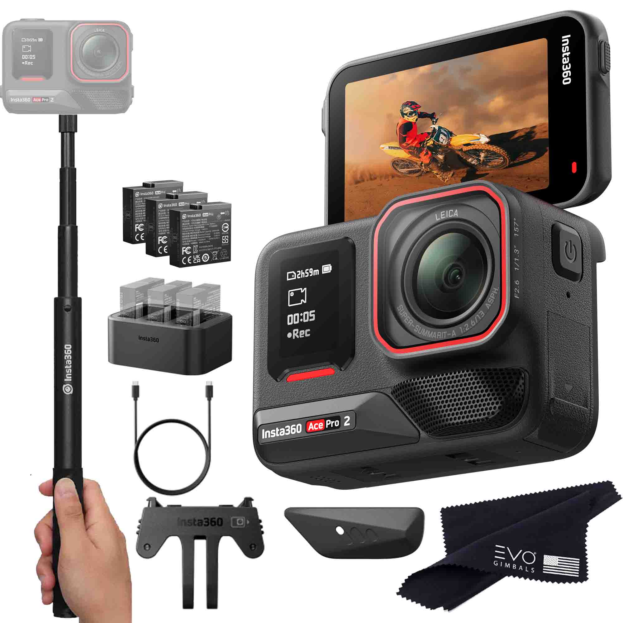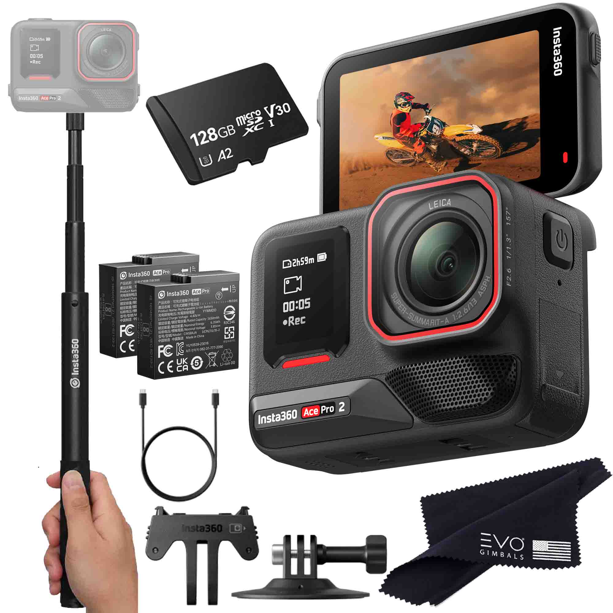 Insta360 ONE X2 360 Camera Bundle Includes 2 Extra Batteries, Charger, Selfie Stick & 128GB Memory Card (5 Items) Insta360 ONE X2 360 Camera Bundle Includes 2 Extra Batteries, Charger, Selfie Stick & 128GB Memory Card (5 Items)