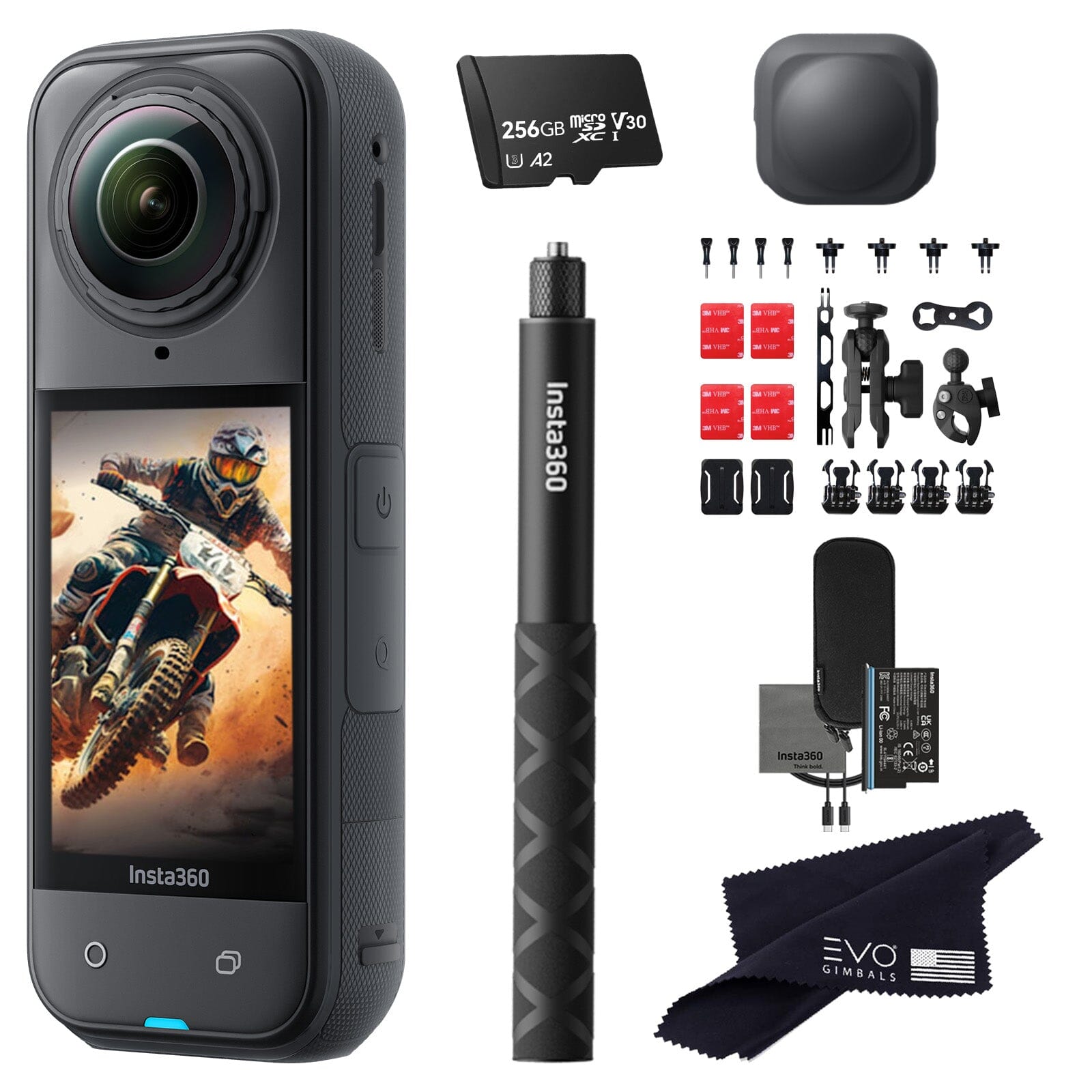 Insta360 X3 camera with Motorcycle bundle, Invisible selfie stick, Lens guard & SD card Insta360 X3 camera with Motorcycle bundle, Invisible selfie stick, Lens guard & SD card